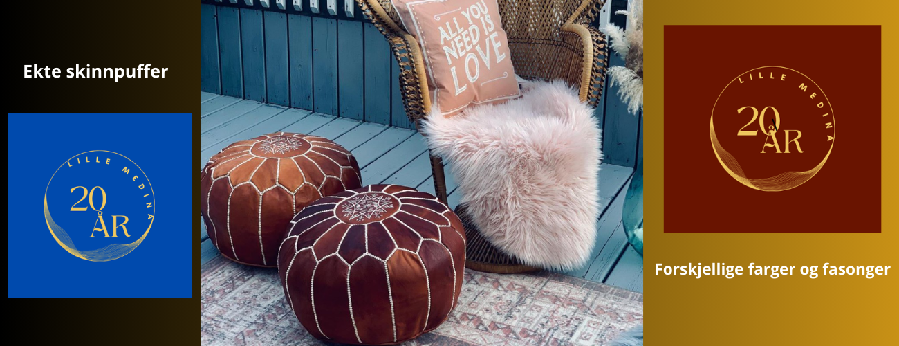 Puffene vi selger i Lille Medina skiller seg positivt ut fordi de er fylt med ordentlig møbelvatt på tradisjonell måte. Dermed er de et møbel som beholder form og fasong lenge. De er ikke fylt med "kraftpapir" eller lignende.